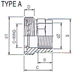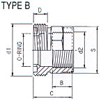| Artikel Code | d1 | d2 | B | C | D | S | O-Ring | Type | Verp. | | 8.23.012 | "5/8"" (M)" | "1/4"" (F)" | 12 | 31 | 10 | 23 | 12.37x2.62 | A | 50 |